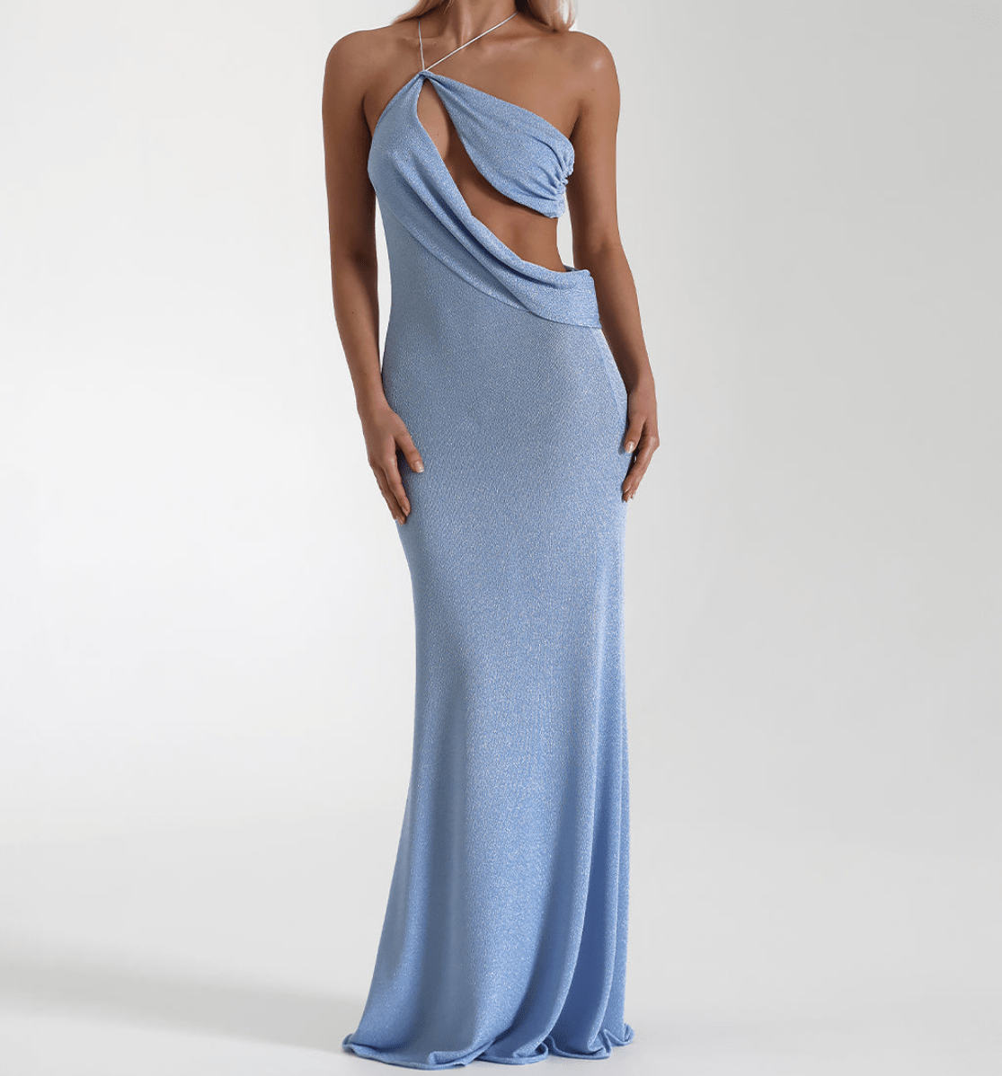 Effortlessly elegant and dreamy, CARSON is a must-have for any luxury wardrobe. Featuring a halter neck, a draped, cutout waistline, and a stunning semi-sheer fabric, this maxi dress exudes femininity and sophistication. Perfect for any special occasion, indulge in the exclusivity of CARSON.