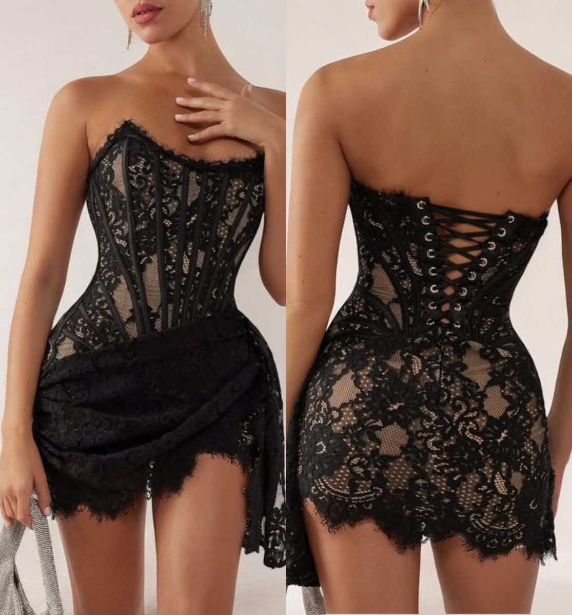 Command attention in the DRUSILA lace corset draped mini dress. Luxurious top quality lace is paired with elegant drapery to sculpt and shape your body. Our signature corsetry enhances the bust, creating a flattering silhouette. With a mini length to showcase your legs, this dress is a true showstopper.