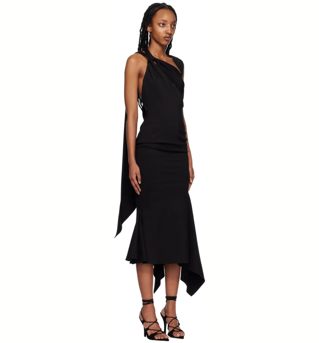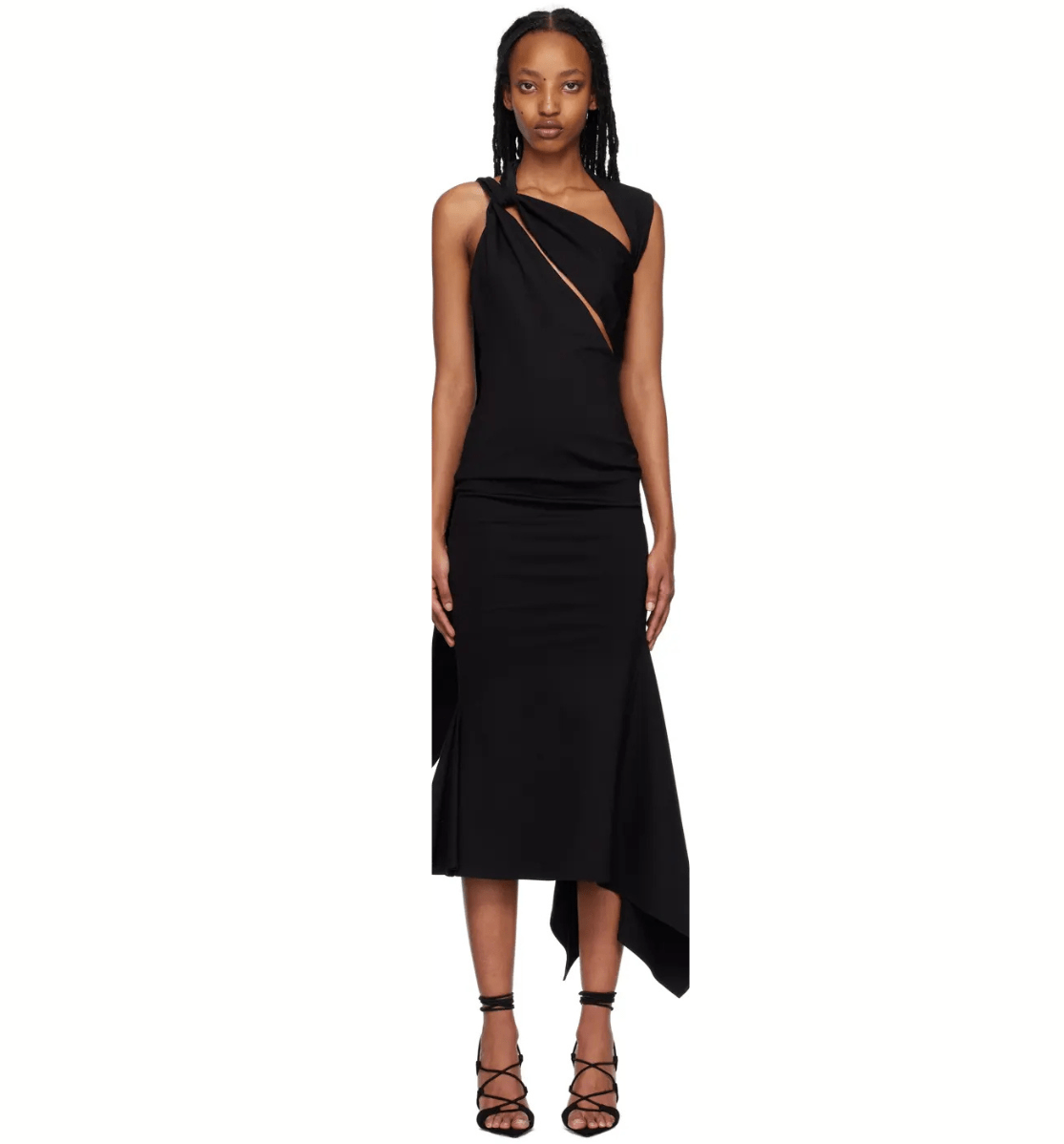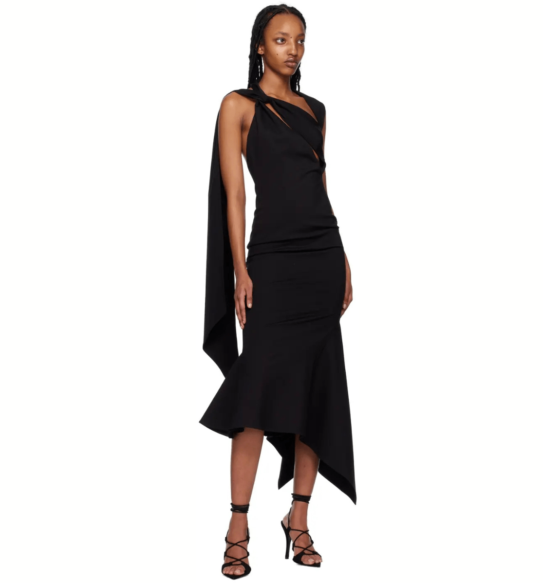 Experience elegance in the LORI dress. Made with a luxurious double-faced stretch rayon and nylon-blend jersey, it features a unique cut out design at the asymmetric neckline and an extended trim at the side seam. The low back closure adds a touch of sophistication. As seen on fashion icon Lori Harvey.