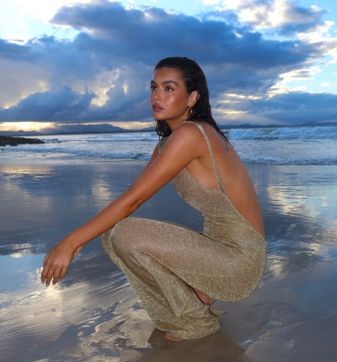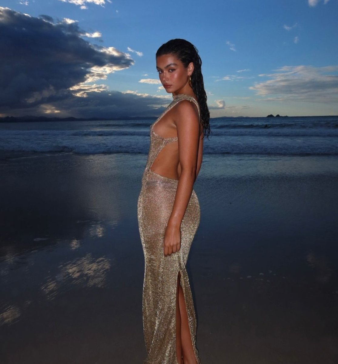 Indulge in the opulence of MAUI. This GOLDEN BACKLESS MAXI is crafted from luxurious KNIT FABRICATION, offering both comfort and style. Embrace the elegance and sophistication of this premium piece, perfect for any occasion. Elevate your wardrobe with this exclusive addition.
