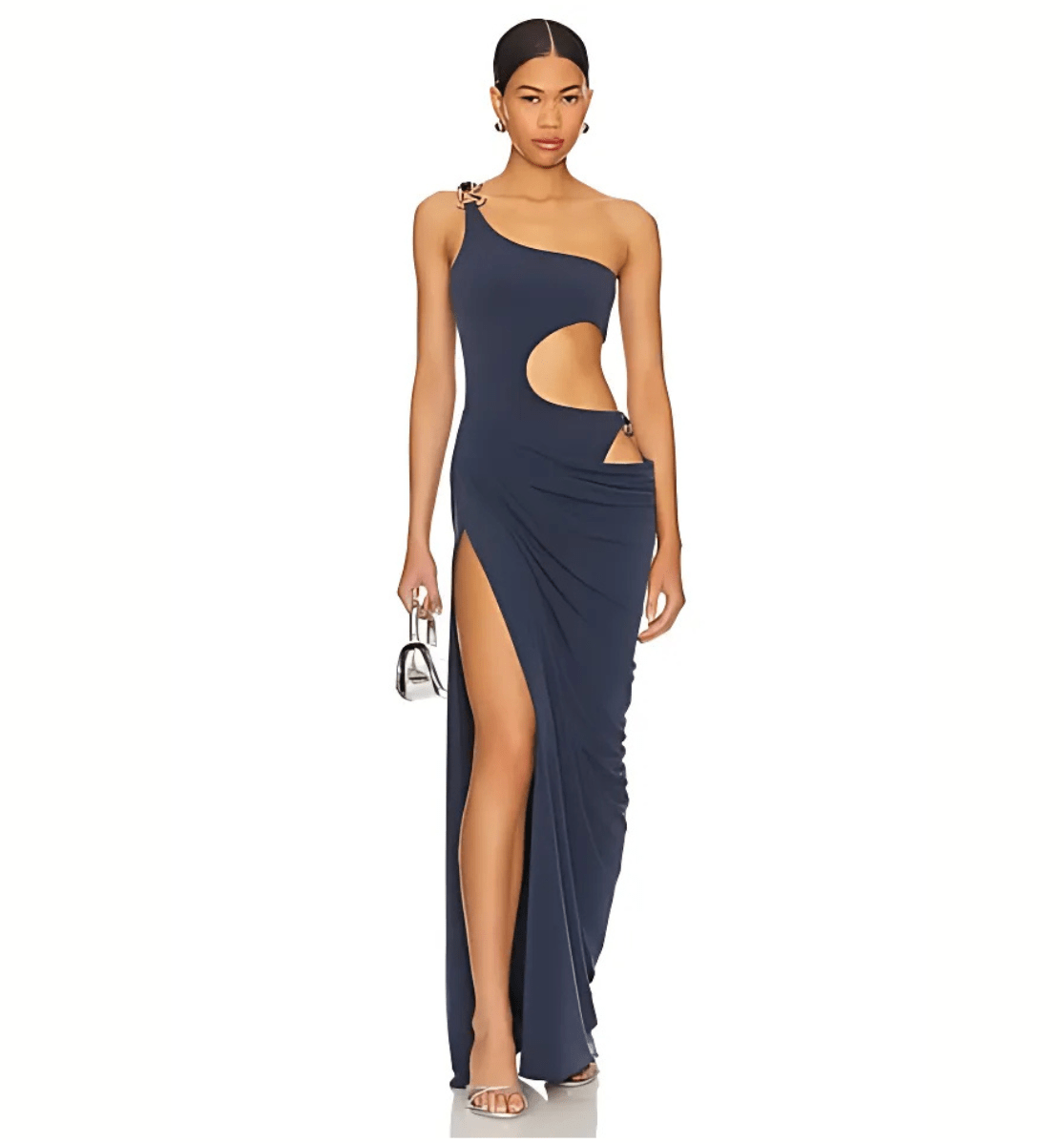Indulge in luxury and elegance with our SKYLER dress. Featuring alluring side cut-outs and a gracefully draped skirt, this one-shoulder style exudes sophistication. Perfect for weddings, parties, and any formal event, it's sure to make a statement that will leave a lasting impression.