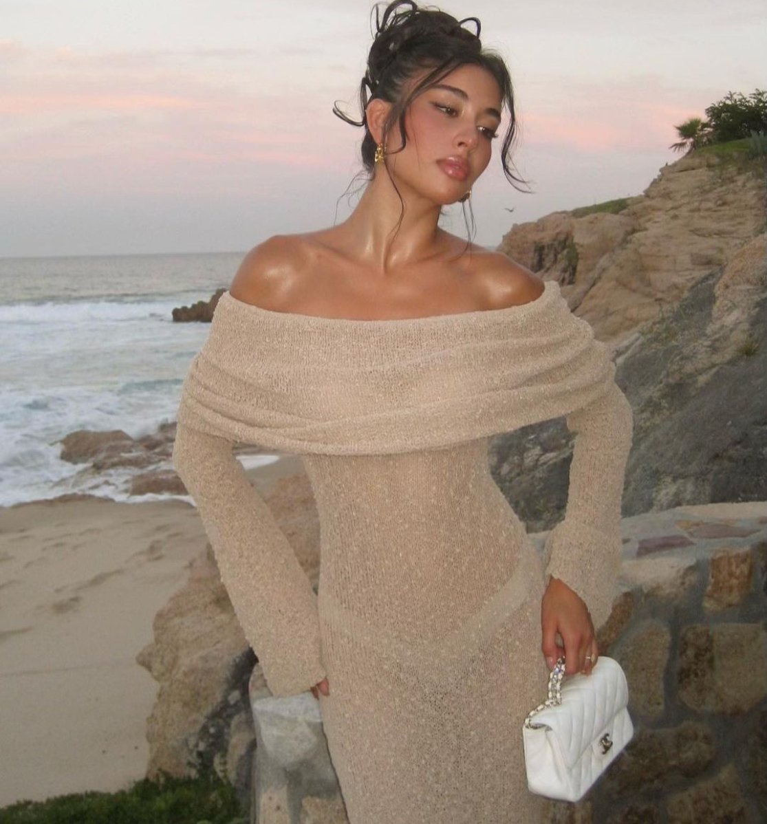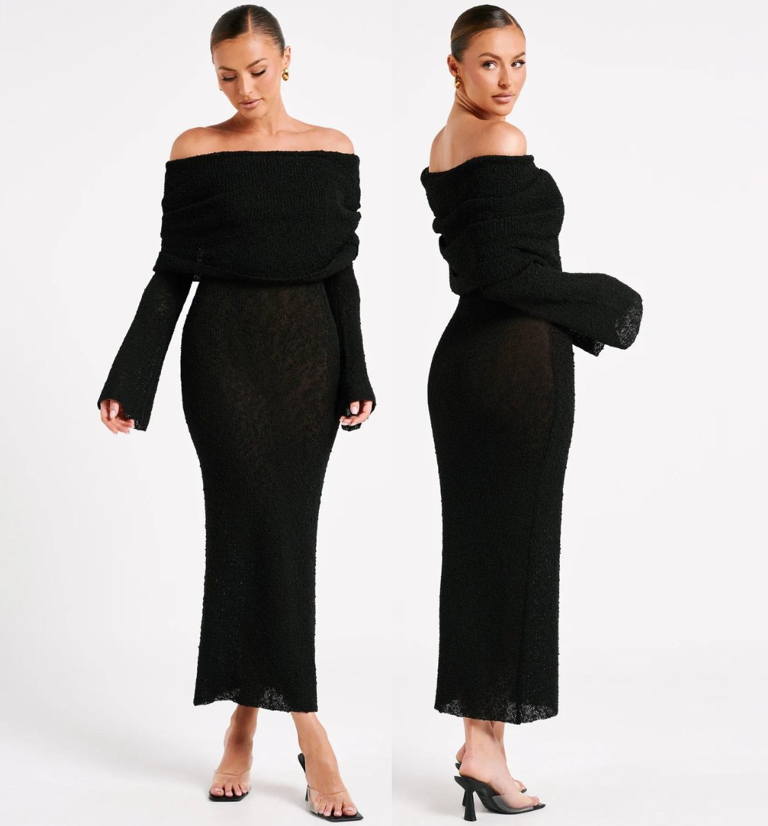 Elevate your wardrobe with VIVIANNA, a sheer off-shoulder maxi dress that exudes effortless elegance. With its ultra-feminine silhouette and delicate fabric, this dress is perfect for any occasion. Embrace a sense of luxury and sophistication in the timeless style of VIVIANNA.