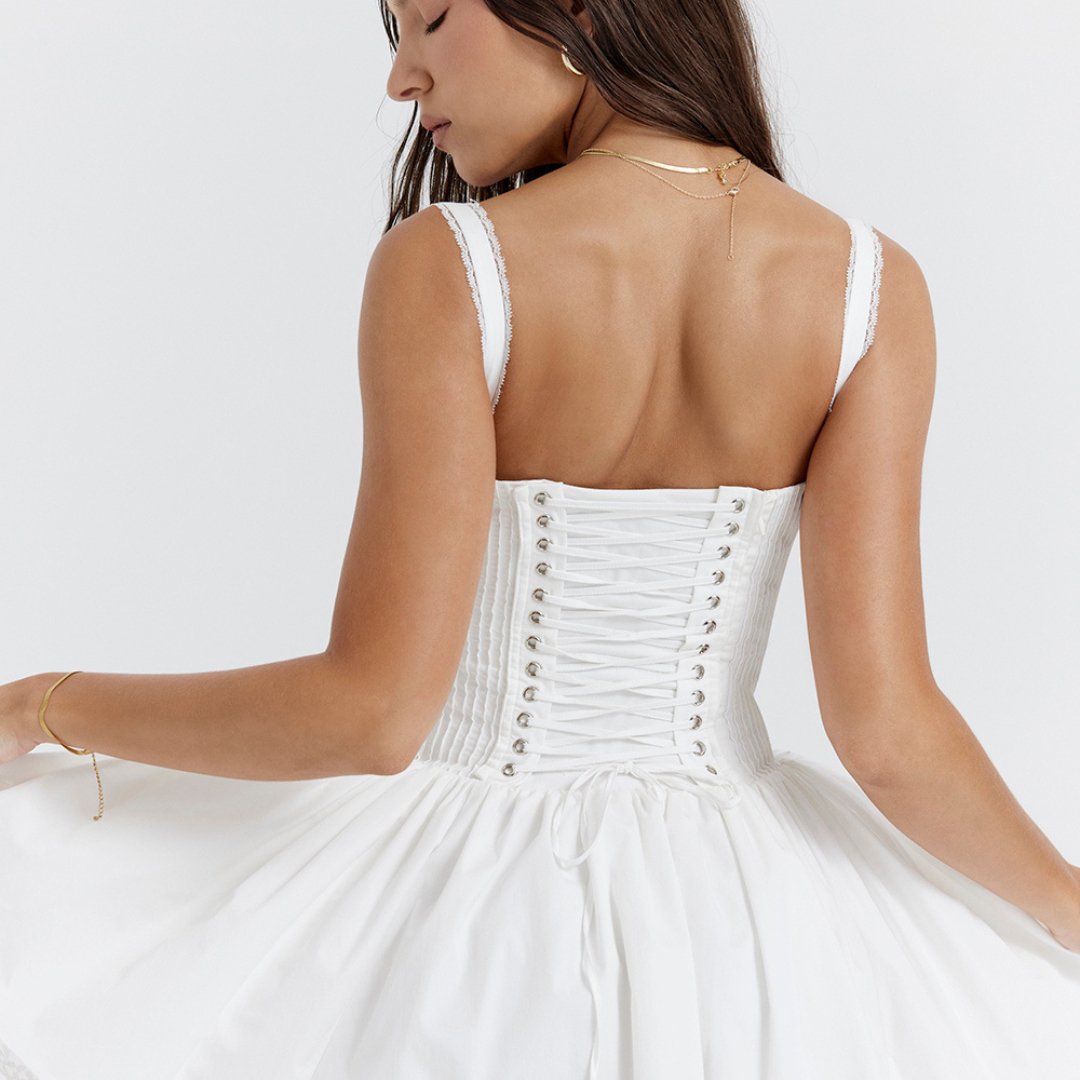 Set off on your own cottagecore adventure in this WHITE RIDING HOOD! Featuring a mini white bustier dress with corset waist and floaty hem, it'll be sure to keep you looking super sassy in any situation. Go forth - you got this! (And don't forget to watch out for those Big Bad Wolves!)